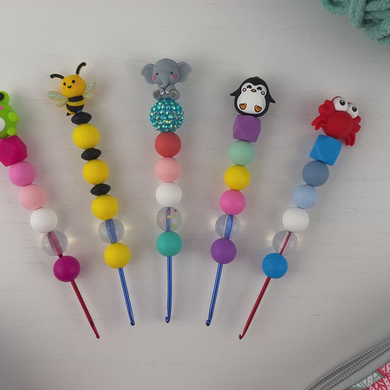 Custom Crochet Hook | Silicone Beaded Handle with Kawaii Animal 3D Charm Topper