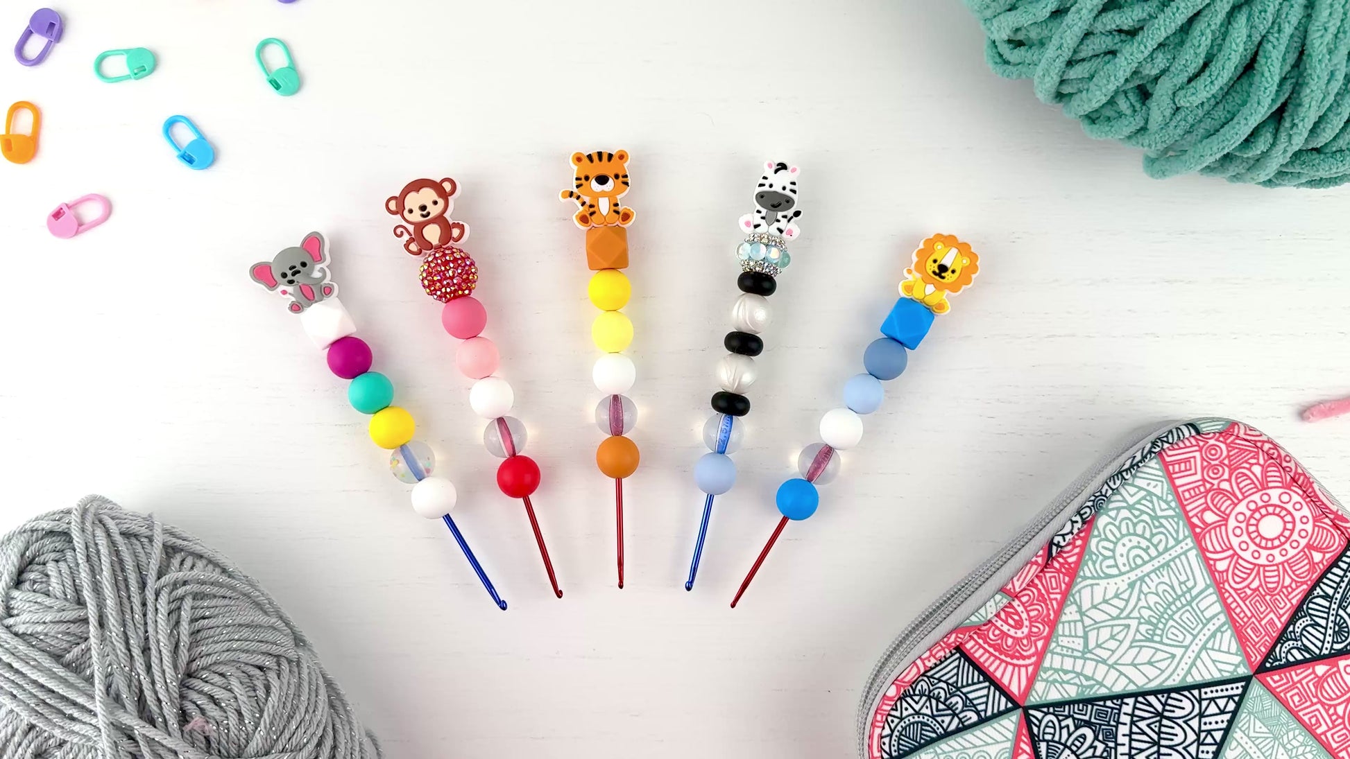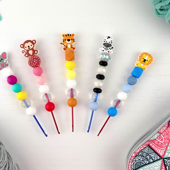 Custom Crochet Hook | Silicone Beaded Handle with Zoo Animal Charm Topper