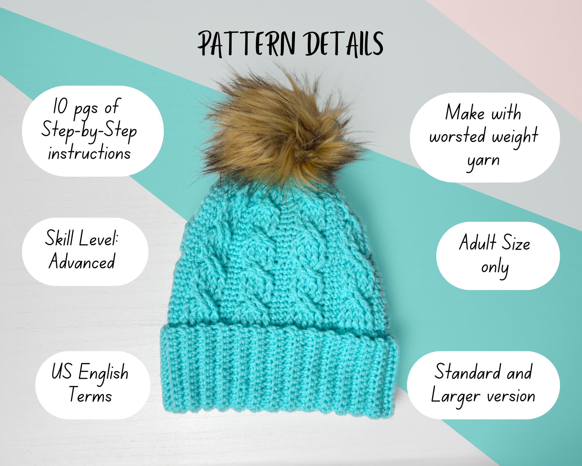 This pattern is ideal for makers looking to create a cozy, structured beanie with beautiful cable texture and a customizable brim.