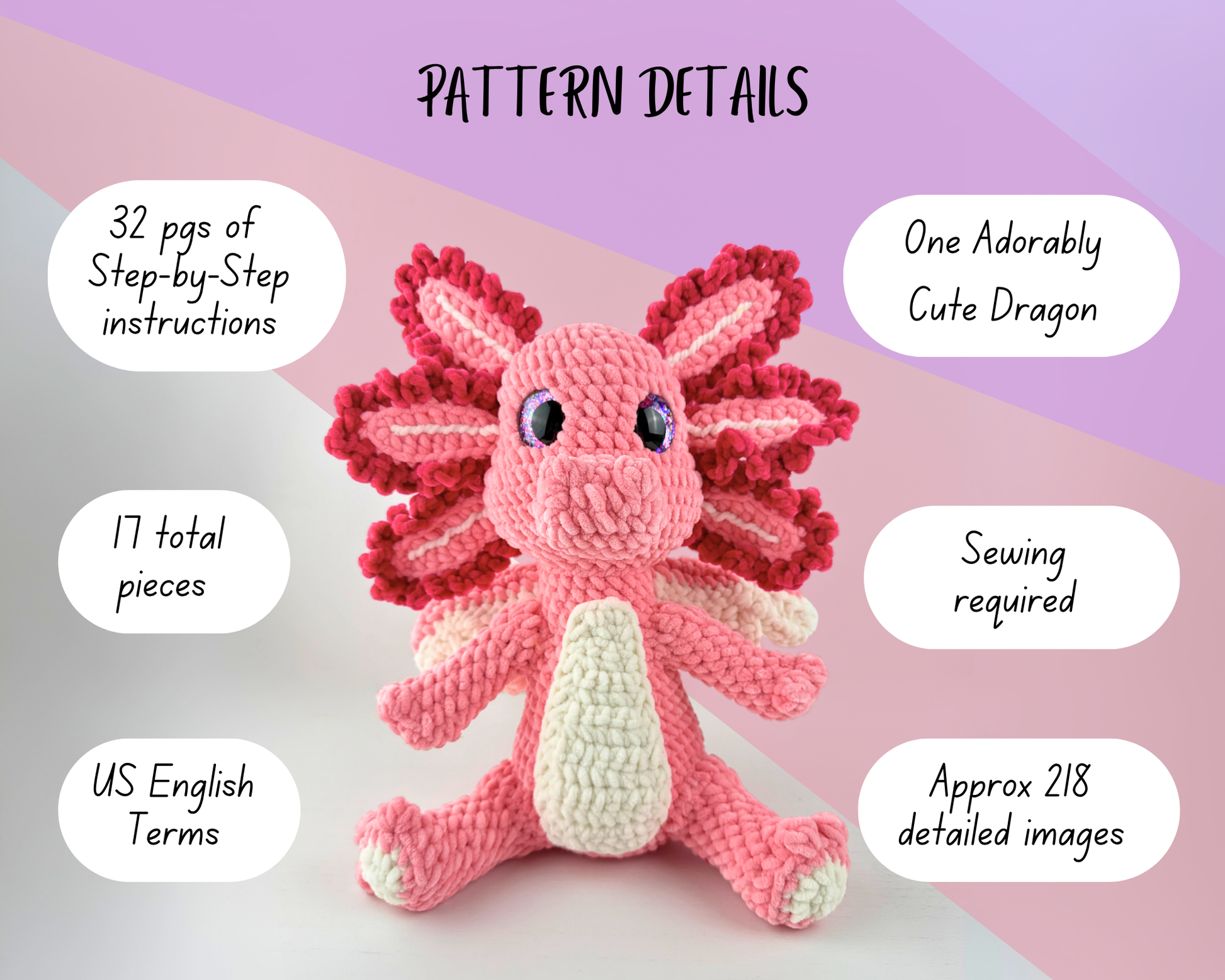 Axolotl Dragon Crochet Pattern | Amigurumi Digital Download PDF Tutorial | Rosalotl
