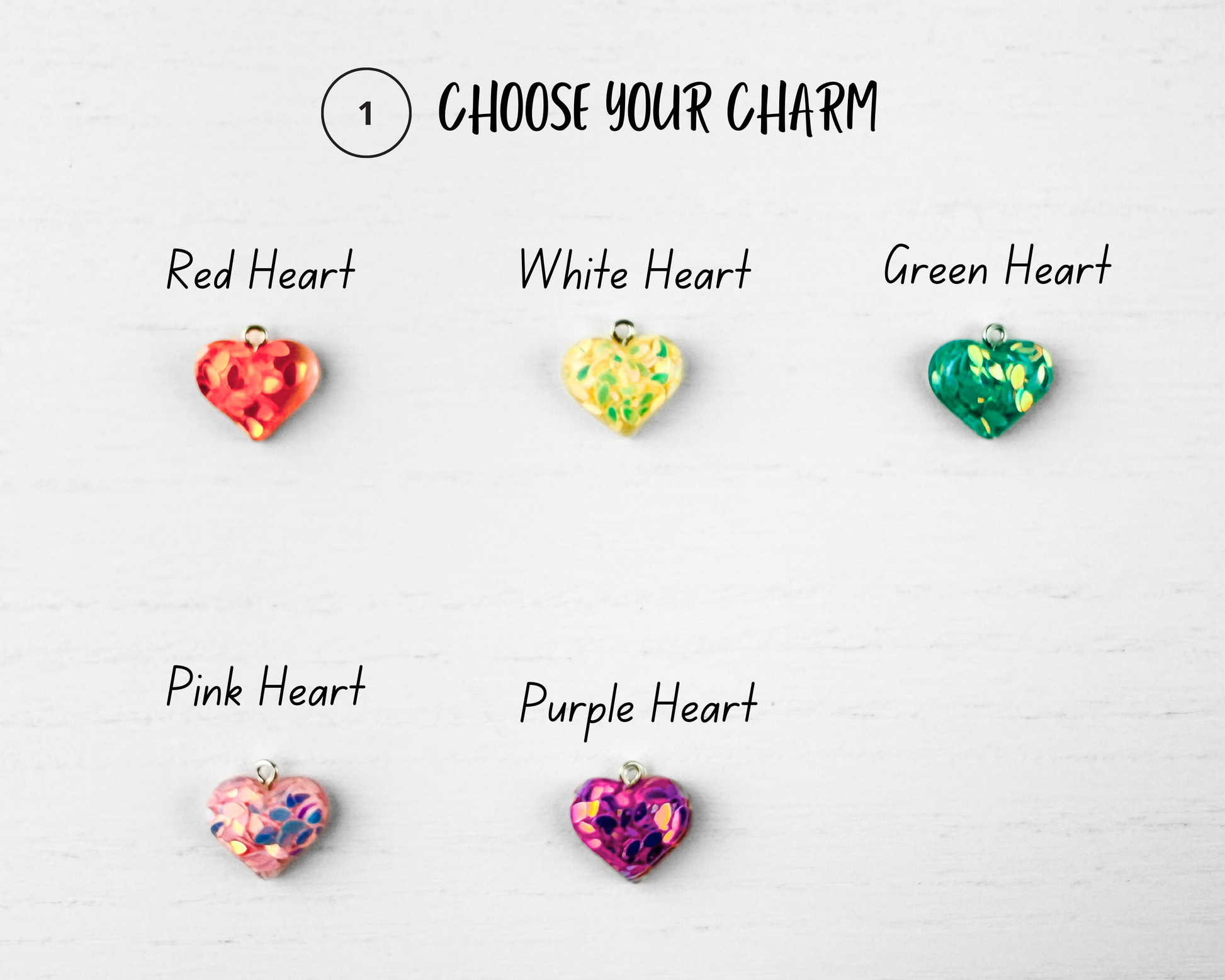 • The full set includes all five of the charms listed on the image "(1) Choose your charms".