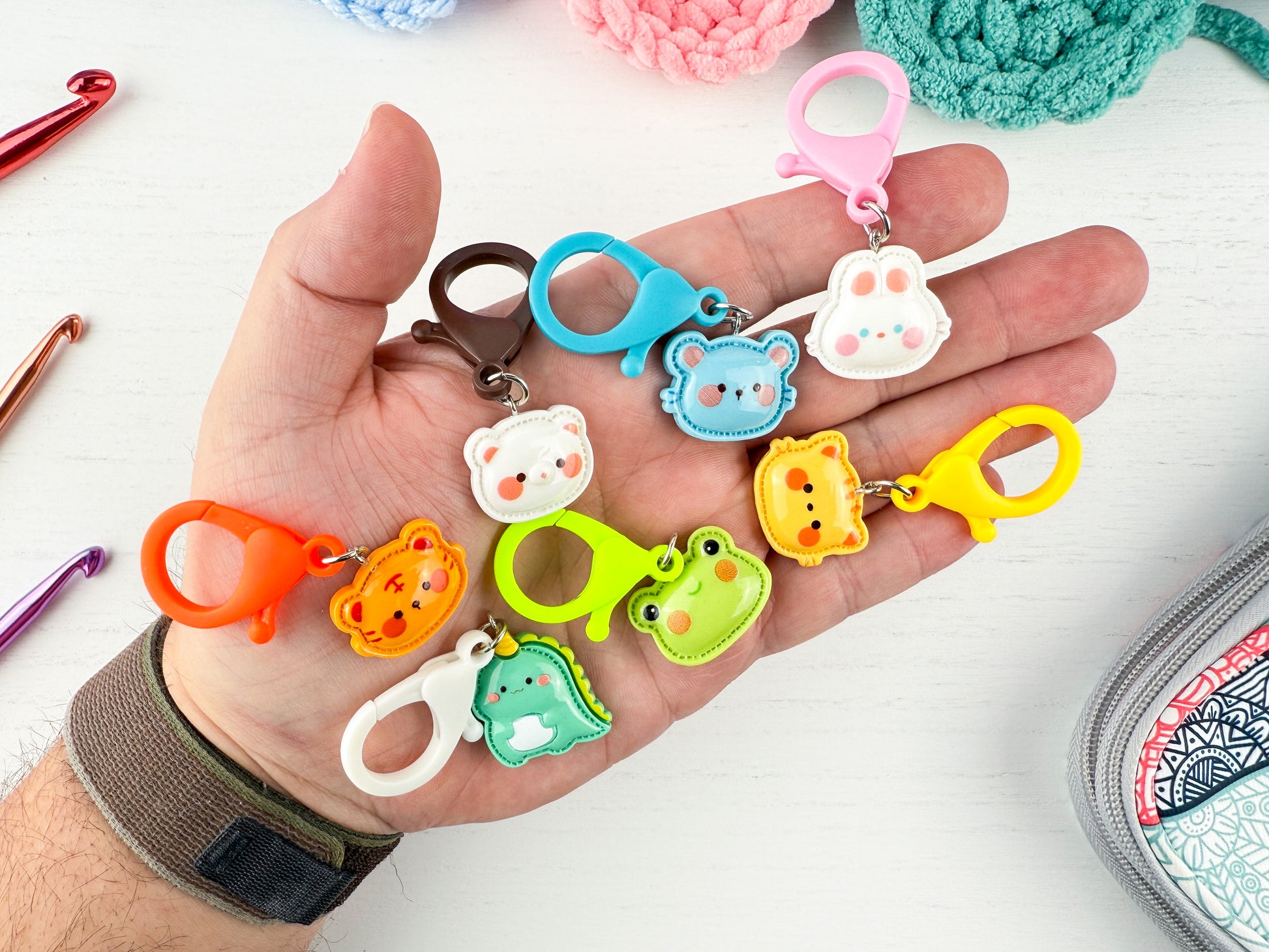 🩵 Add a pop of color and charm to your crochet or knitting projects with this set of adorable stitch markers! Each marker features a unique colorful animal charms attached to a sturdy plastic lobster clasp, making it easy to attach and remove as you work. Perfect for keeping track of stitches, rows, or patterns, these stitch markers are both practical and stylish—a great addition to any crafter’s toolkit or a thoughtful gift for a crochet or knitting enthusiast!
