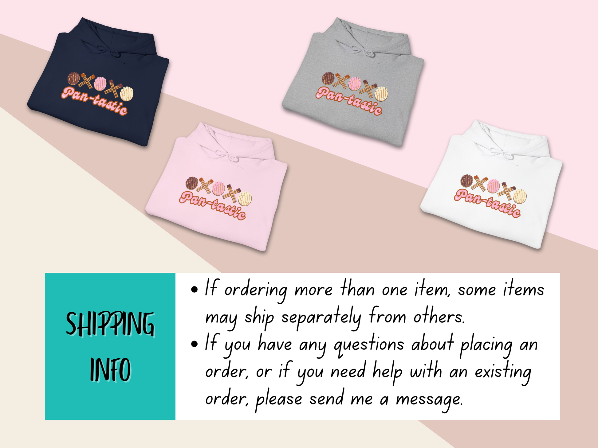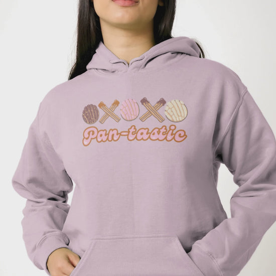 🩵 Stay cozy and stylish in this unisex hooded sweatshirt featuring a XOXO graphic made of conchas and Churros. A spanglish play on the word fantastic with the phrase 'Pantastic' adds a fun and unique touch to your wardrobe. Perfect for those who love Mexican sweet bread and want to stay warm during the cooler months. Ideal for casual wear, lounging at home, or making a statement at any occasion.