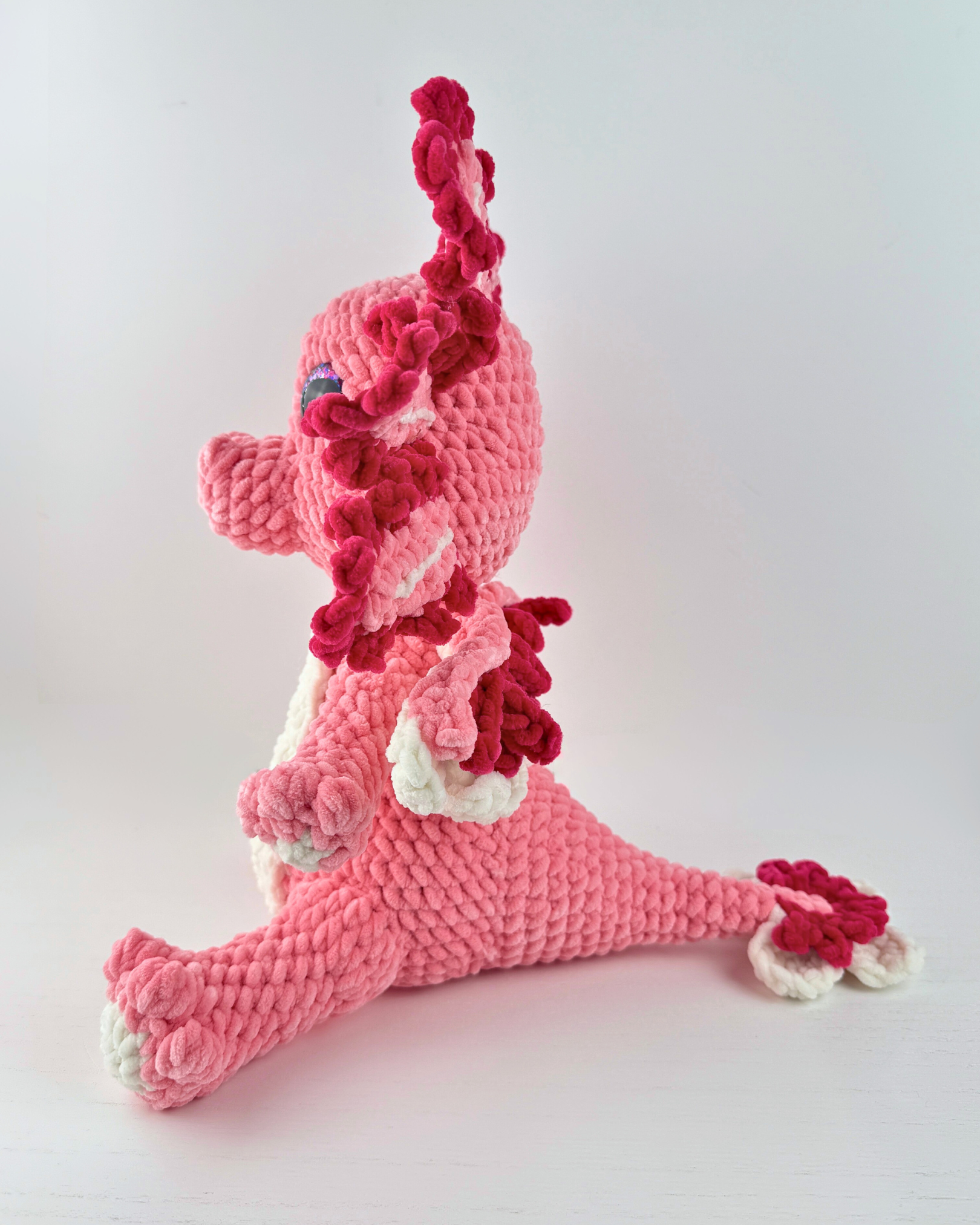 Rosalotl Axolotl Dragon Plush | Pink Crochet Amigurumi Plushie | Cute Handmade Gift