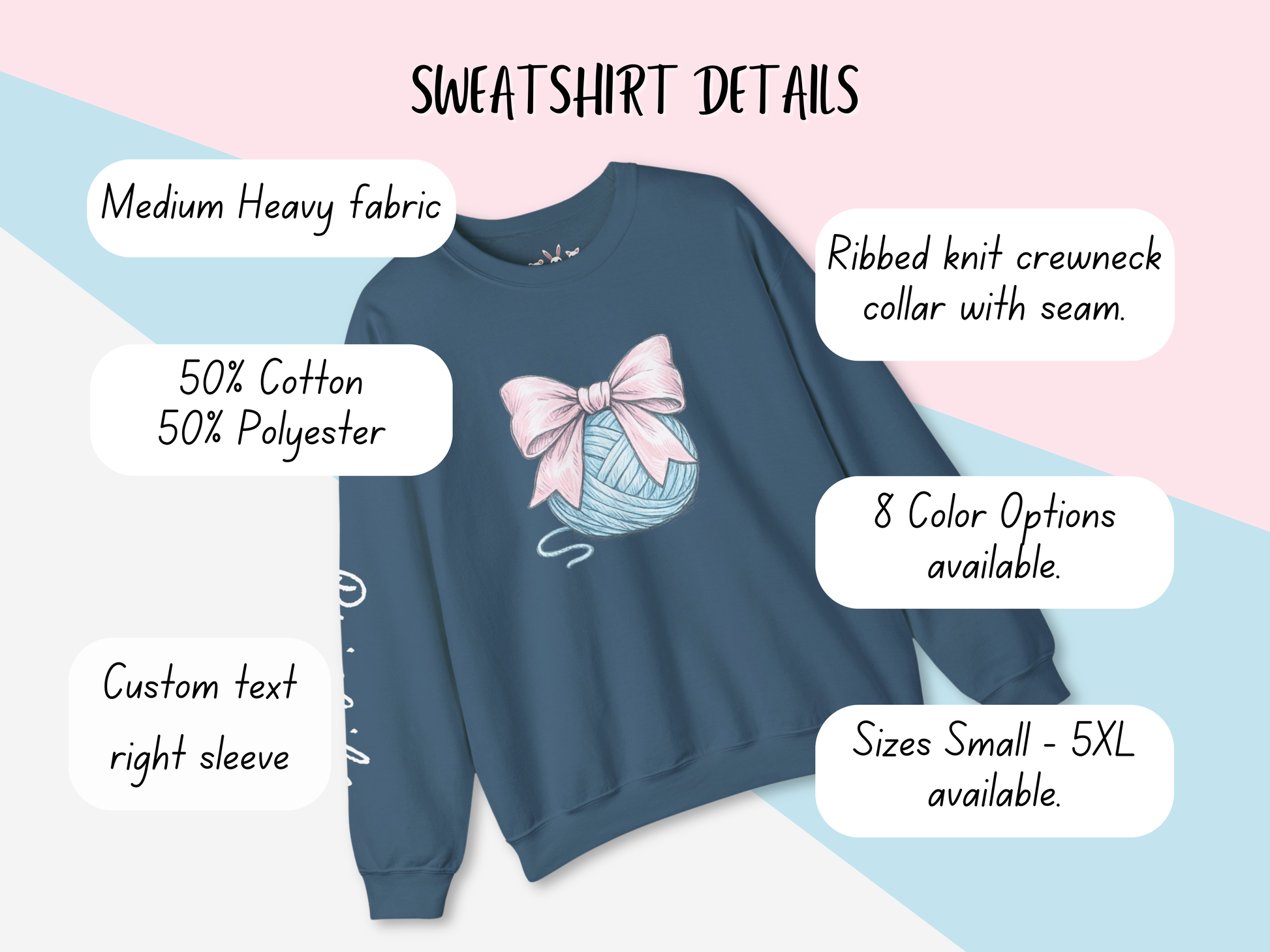 Personalized Pink Bow on Yarn Sweatshirt | Coquette Graphic Sweater | Custom Sleeve Text