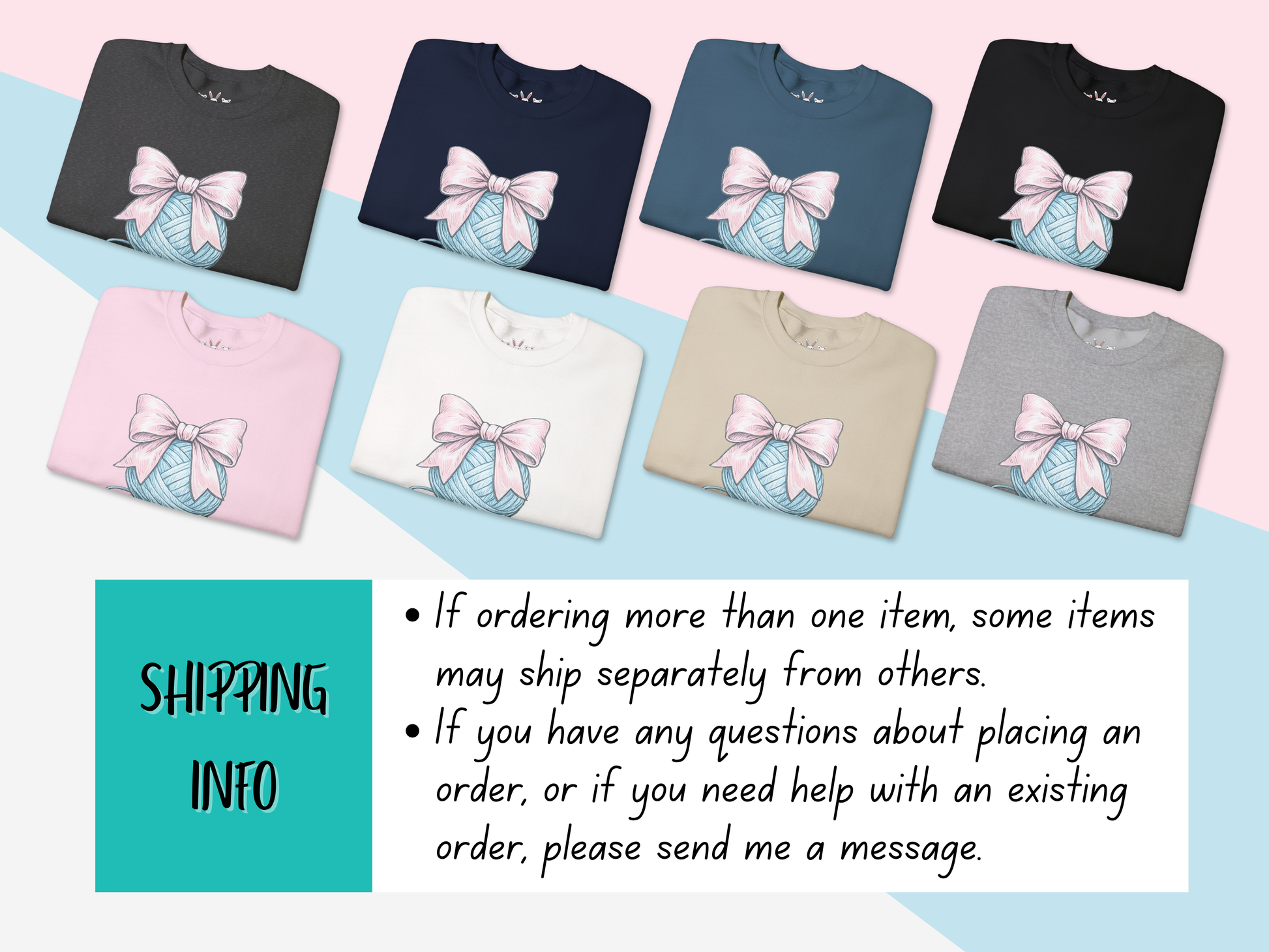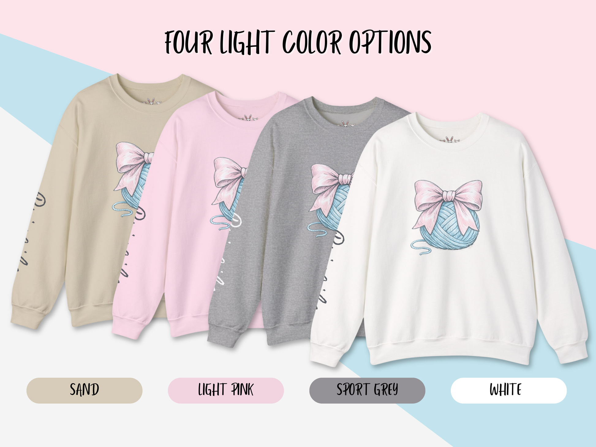 πThis charming sweatshirt features a soft pink coquette-style bow resting atop a yarn ball β a playful design created for fiber artists, makers, and yarn lovers of every kind.